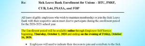 Reminder to CUB BCPSS members: Sick Bank open enrollment for SY 2020-2021 ends Friday, October 16, 2020. You must opt in to be a member of the Sick Bank program.