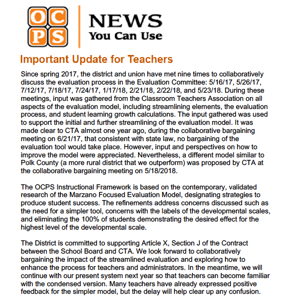 OCPS sent another inaccurate News You Can Use on May 31, 2018